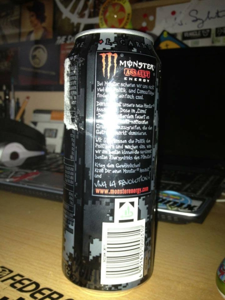 Je to naprosto jednoduché – Monster Assault, jehož příchuť jsme popisovali stokrát dokola, už měl být v Čechách i na Slovensku. A není. Objevil se jen v Německé verzi s československým přelepem a všichni začali jásat, hledají ovšem marně. Jednalo se evidentně jen o „limitované“ množství dostupné jen a pouze v Tescu na Slovensku. Pár šťastlivců jej má, od německé plechovky jej liší jen ona nálepka, tak to stejně není žádná výhra.