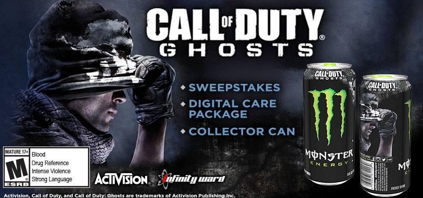 Značka Call of Duty patří dlouhodobě mezi celosvětově nejvíce propagované herní série. Pro nás nejzajímavější reklamní spojení představují samozřejmě plechovky od energy drinků. Zatím nejznámějším a nejvzácnějším kouskem byl bezpochyby Monster Assault s reklamou na Call of Duty: Modern Warfare 2. V Austrálii nyní řádí V Energy s reklamou na Halo 4, v USA a Kanadě zase Monster s chystaným Call of Duty: Ghosts