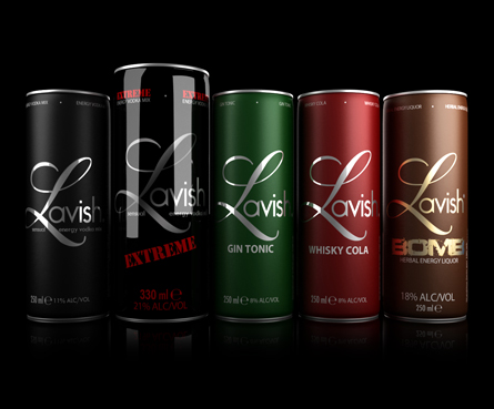 Ano, máme tu další energetický nápoj s alkoholem, co míří na český trh. Vedle dvojice Four maXed s absintem se objeví také Lavish s kvalitní třikrát destilovanou vodkou. Základem je klasický Lavish sensual vodka mix drink s 11% alkoholu doplněný o verze Extreme s 21% a bylinný (herbal) Bomb s 18% alc. Pod značkou Lavish existují ještě 8% drinky Gin & Tonic a Whisky Cola. V ČR se však zatím uvažuje jen o verzích s vodkou.